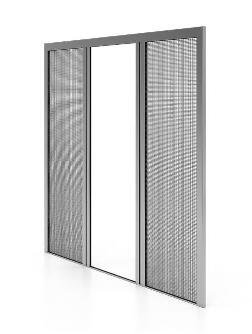 Dvoukřídlá síť proti hmyzu s možností rohové varianty bez sloupku. Lze použít na terasové dveře do šířky 6 m a výšky 3,2 m.